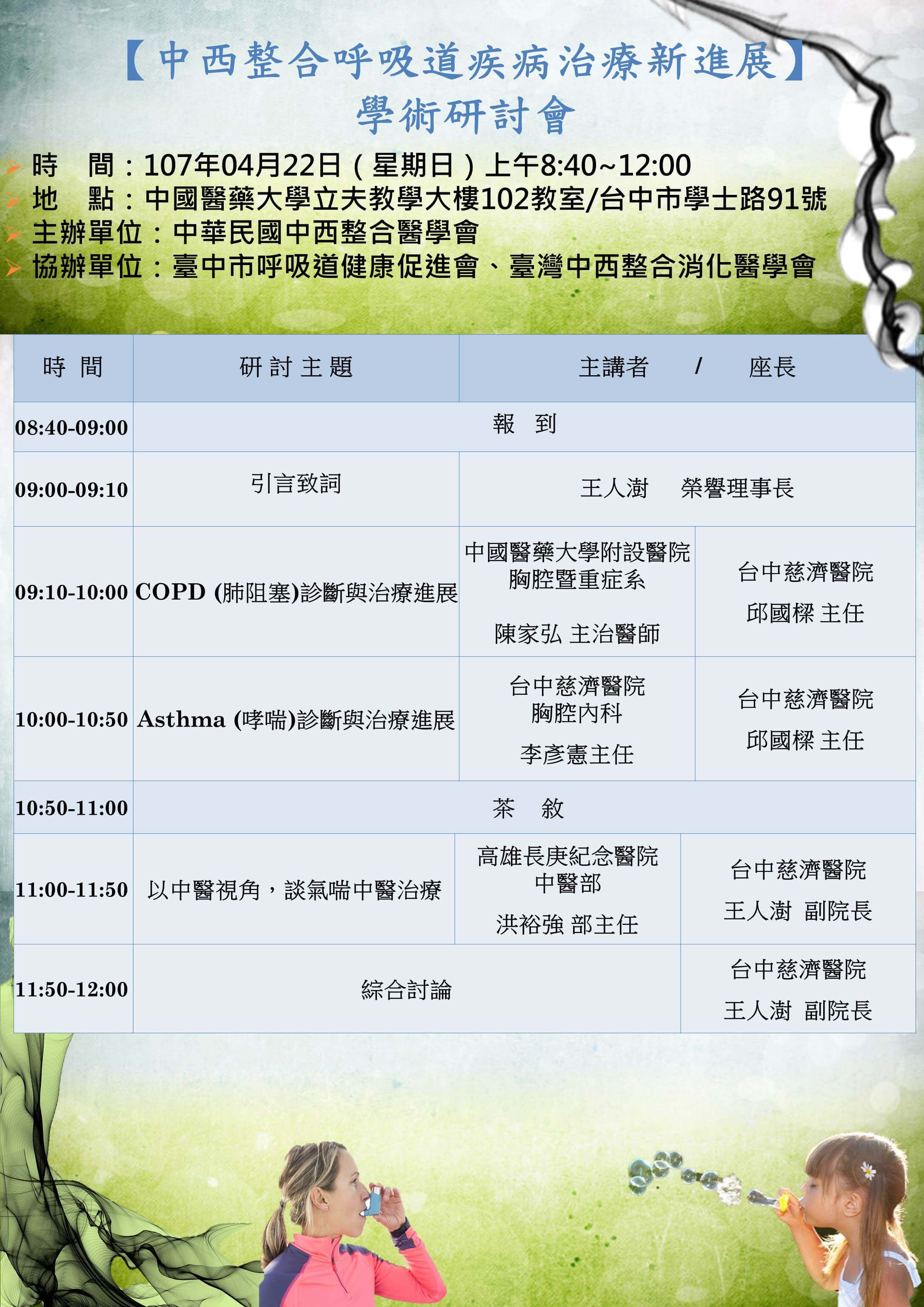 協辦單位:臺中市呼吸道健康促進會 、臺灣中西整合消化醫會、中華針灸醫學