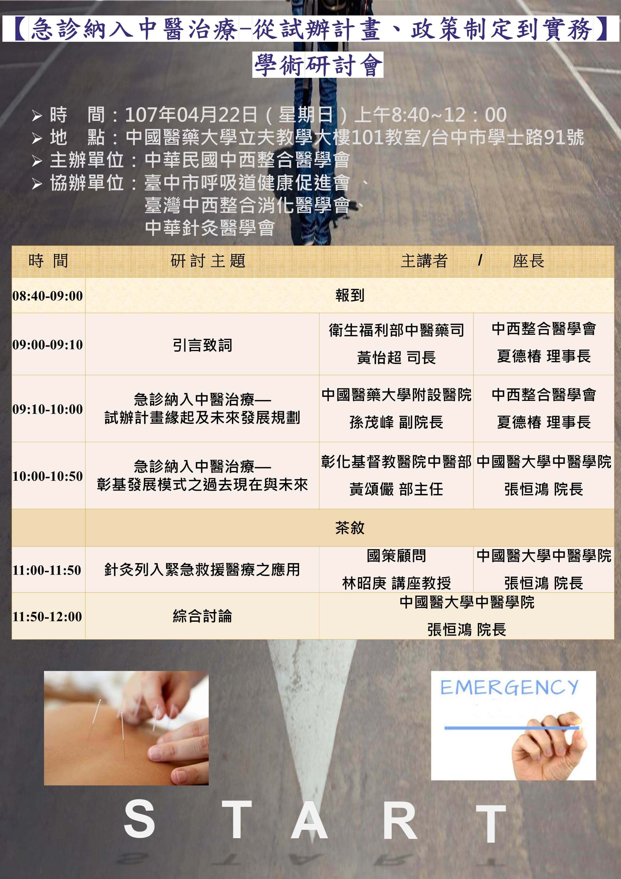 協辦單位:中國醫藥大學國際整合醫學中心、中華民國中西整合醫學會、中國醫藥大學中醫學系