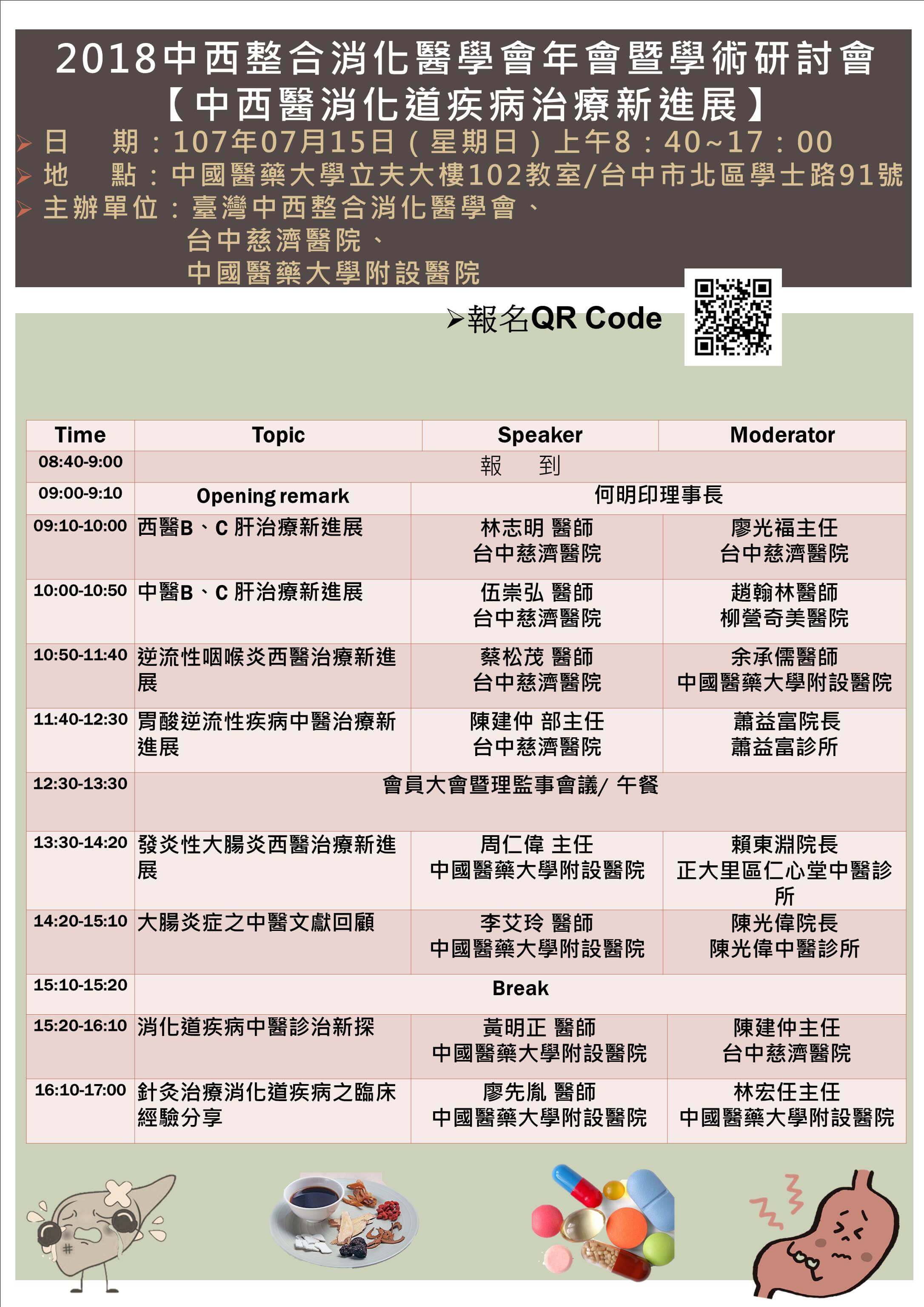 主辦單位:臺灣中西整合消化醫學會、台中慈濟醫院、中國醫藥大學附設醫院
