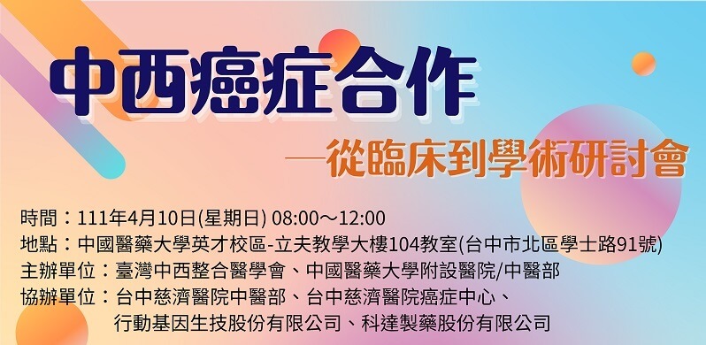 2 月172022 4/10【中西癌症合作-從臨床到學術】*實體暨線上視訊課程* 會務2022-02-17時間:111年04月10日(星期日)08:00~12:00 地點: 中國醫藥大學英才校區立夫教學大樓104教室… 閱讀內文