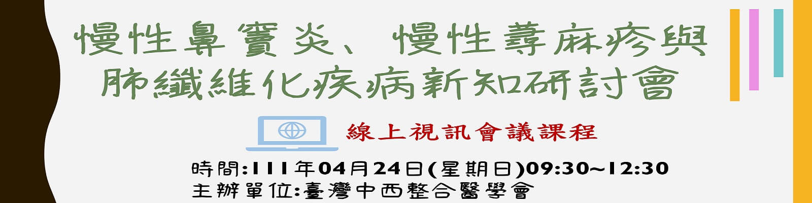 3 月152022 4/24【慢性鼻竇炎、慢性蕁麻疹與肺纖維化疾病新知】-線上視訊課程 會務2022-03-15時間:111年04月24日(星期日)09:30~12:30 主辦單位:臺灣中西整合醫學會 ☛線上… 閱讀內文