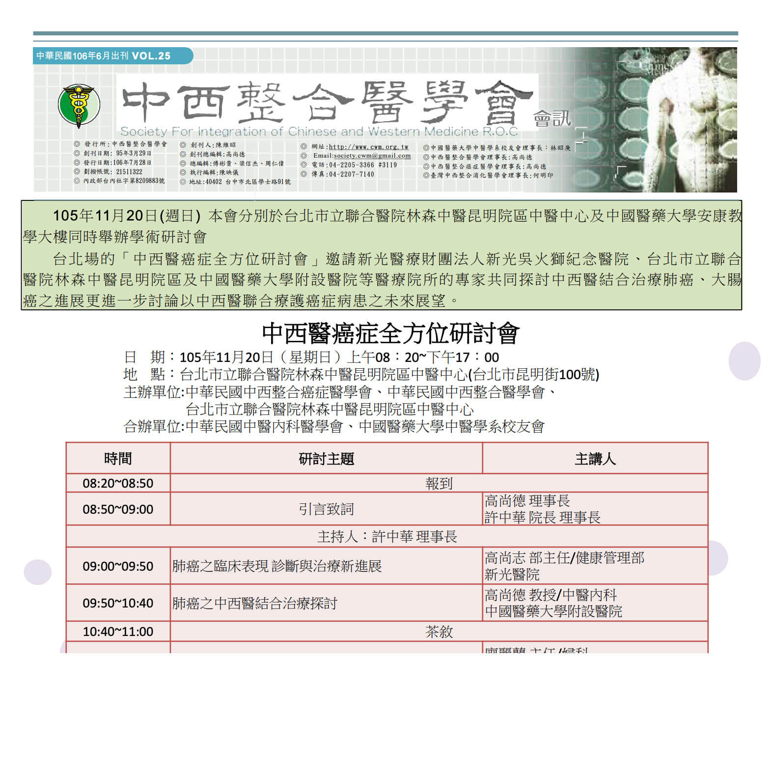 敬請各位會員閱覽 閱讀第二十五期期刊 Post navigation上一則Previous post:敬邀各位醫師參加【中西結合痹症虛證・癌症】學術研討會下一則Next post:會員資料更新通知相關新聞2025年會Poster Presentation 投稿辦法及摘要範本2025-09-15乙巳年大吉2025-01-202024年會Poster Presentation 投稿規則及摘要範本2024-08-222024年會員住宿優惠訊息2023-12-012023第一屆中西整合MSK疼痛治療全國高峰論壇2023-08-012022年會Poster Presentation 投稿規則及摘要範本2022-10-14