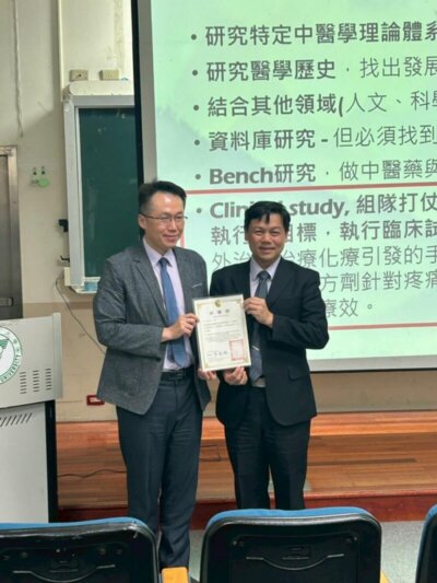 「中西醫學之整合與創新」研討會於2025年12月21日假中國醫藥大學舉行,會議聚焦中西醫整合於精準醫療與再生醫學之前瞻應用。議程涵蓋細胞治療、外泌體與再生科技、體學檢測結合中草藥及保健食品介入策略,以及精準益生菌於預防醫學與健康產業之發展趨勢,並進一步探討能量代謝調控在延緩老化之潛力與臨床應用。此外,針對中西醫合作治療癌症與免疫治療最新進展進行深入分享。透過跨領域專家交流,展現中西醫整合在創新研究與臨床轉譯上的多元可能,為未來醫療發展提供重要學術啟發。 Post navigation上一則Previous post:【兩岸呼吸道疾病交流會】活動花絮下一則Next post:中西整合腸腦互動失調疾病診斷及治療新知研討會相關新聞【兩岸呼吸道疾病交流會】活動花絮2025-12-202025 Lung Cancer Forum 圓滿落幕2025-05-25最新的外泌體前瞻研究和臨床應用Panel Discussion2025-04-172024/4/14呼吸道疾病研討會2024-04-151月14日 <中西整合脂肪肝及相關發炎性大腸疾病治療新進展>研討會照片2024-01-2210月01日【Update on Perioperative Pain Management】活動紀錄2022-10-24