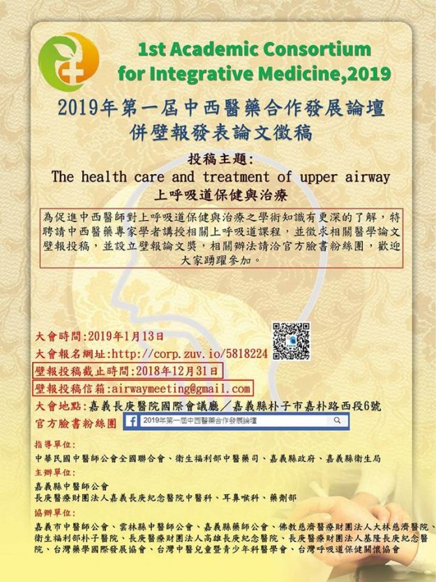 ~~轉知研討會訊息~~ 【2019年第一屆中西醫藥合作發展論壇】 本論壇開始接受相關報名及壁報投稿 敬請大家踴…