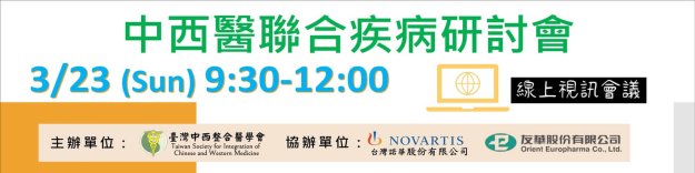 【 中西醫聯合疾病研討會】線上視訊會議 學術研討會發佈者:中西整合醫學會 管理員2024-10-15時間:2024年11月17日(週日) 09:00-12:20 主辦單位:臺灣中西整合醫學會 協辦單位:台灣諾華…
