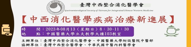 【中西消化醫學疾病治療新進展】 學術研討會發佈者:中西整合醫學會 管理員2023-06-30日期: 2023/08/13(週日) 8:50~11:30 地點: 中國醫藥大學立夫教學大樓103教室 主辦單…