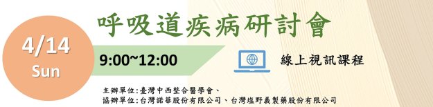 【呼吸道疾病研討會】線上視訊會議 學術研討會發佈者:中西整合醫學會 管理員2024-03-13時間:2024年04月14日(週日) 09:00-12:20 ▶︎報名表:https://forms.gle/…