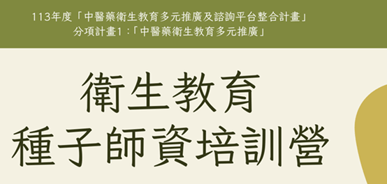 113年度「中醫藥衛生教育多元推廣及諮詢平台整合計畫」 學術研討會發佈者:中西整合醫學會 管理員2024-06-01 113年度「中醫藥衛生教育多元推廣及諮詢平台整合計畫」分項計畫1:「中醫藥衛生教育多元推廣」「衛…