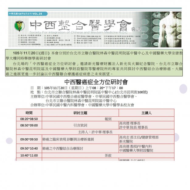 夏德椿主任 當選中華民國中西整合醫學會第十屆理事長